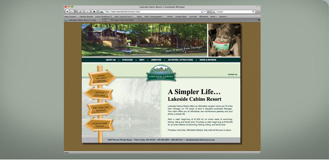 This site provides detail and information about this cabin develelopment in Michigan. Included are site plans, floor plans, event schedules, amenity photos, snapshots taken from events with residents, a video of testimonials, and information on the area.