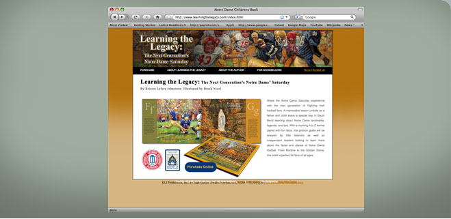 Not only does this site provide details about this book, you can order a copy from the site. Learning the Legacy is a childrens book about Notre Dame Football.